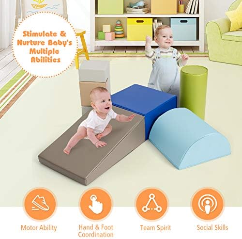 Do you want to give your kid a perfect gift? Our climbing and crawling foam play set could help kids develop important motor skills and hand-eye coordination as they play at home, in day care or in the classroom. This Climb and Play 6-Piece Set must be your good choice. It helps to arouse your little ones’ curiosity, develop their gross motor skill and social skills, enhance eye-hand coordination, and cultivate babies color cognition and selection of different shapes. Also, the soft and safe EPE peal cotton is suitable for babies to climb, crawl, slide, walk and sit on it. This set is a perfect toy for kids featuring safety, interesting and beneficial. Don’t hesitate to buy one!
