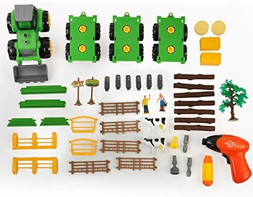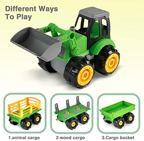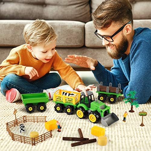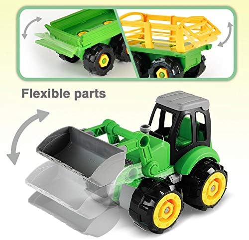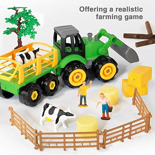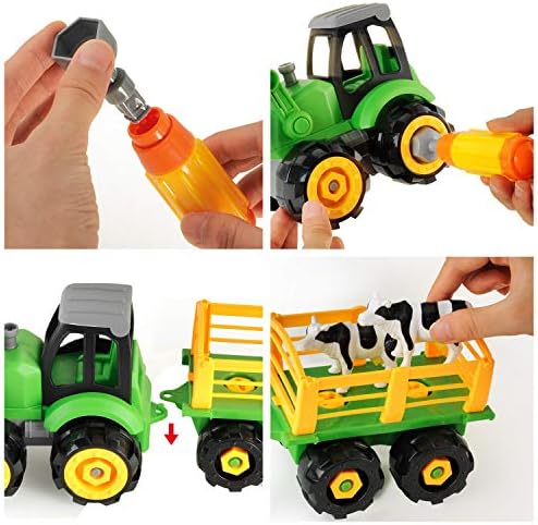 GREATER THAN TAKE APART TOYS SET: Combination of take part farm truck toys and farming games. After the vehicle is assembled, You can build a toy farm yard step by step with fence pieces,tree,transporter,cow figure and so on.
