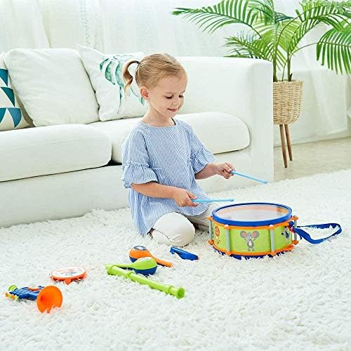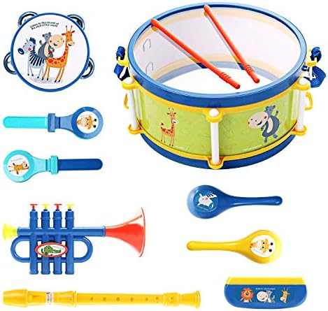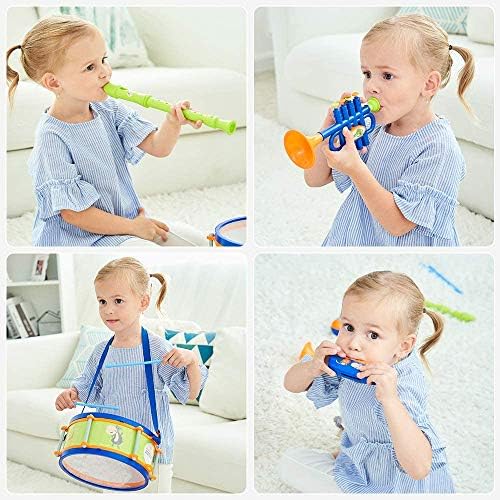 ♫ Educational Musical Toys: Drum and tambourine can exercise children’s motor skills. The trumpet, flute and harmonica can exercise children’s vital capacity.