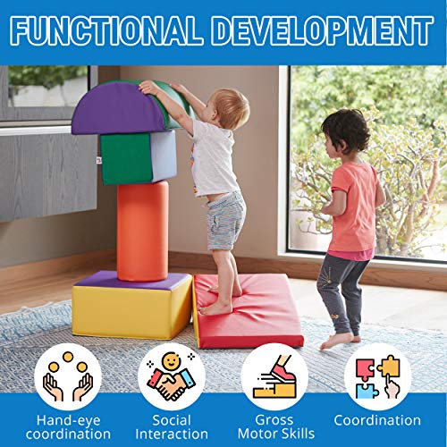 SAFE AND ACTIVE PLAY SET: Designed to be safe, flexible, and fun; dense foam structure of each lightweight piece keeps kids safe and cozy as they play; features a non-slip bottom to keep pieces stable