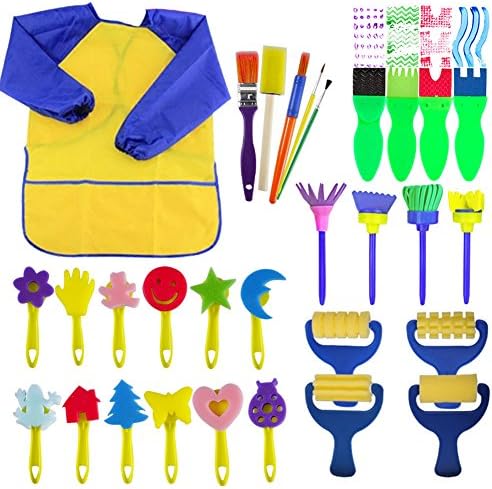 Toys for Toddlers: EVNEED Paint Sponges for Kids,29 pcs of Fun Paint Brushes for Toddlers.Coming with Sponge Brush, Flower Pattern Brush, Brush Set, Long Sleeve Waterproof Apron with 3 Roomy Pockets