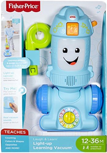 Clean up time has never been more fun! When your toddler pushes the vacuum along, bright lights and learning songs and phrases will introduce colors, counting, and more. Flip the “power” switch up and actual vacuum sounds let your tiny helper really get into the role play fun! Where development comes into play; Academics: Playful songs and phrases introduce counting, colors, shapes, opposites, and more. Gross Motor: As your baby pushes the vacuum here, there, and everywhere, they’re developing important gross motor skills like balance and coordination. Creativity & Imagination: The realistic design and sound effects encourages early role play and imaginative fun as your little one pretends to clean house! Tilts up & down, just a like a real vacuum! (Note: Not intended for use as a walking aid; does not lock in upright position.)