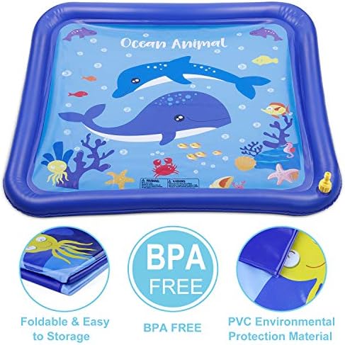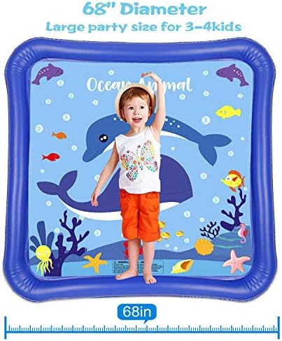 【UNIQUE DESIGN & FUN】- This Giftinthebox sprinkler and splash play mat features an exclusive whale design. Lay or sit in the big ocean and surrounded by different cute fishes, children or even pets will be thrilled to play in the sprinkle and spray.