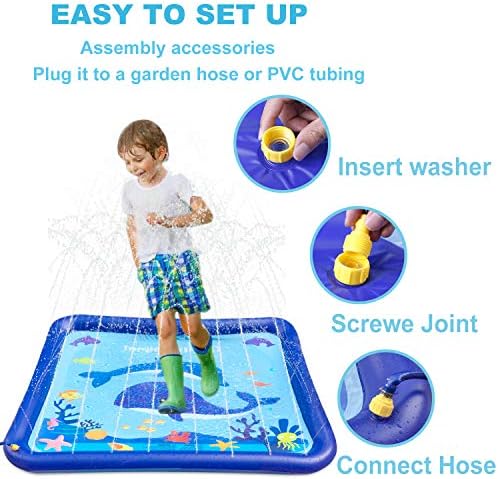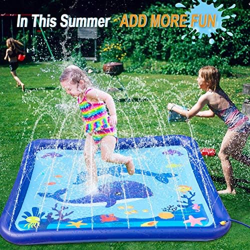 【STURDY SIDE SEAM & SURFACE SPRINKLER PAD】 – Durable high quality splash water play mat is constructed from heavy-duty environmental PVC material. High-frequency welding process to ensure strong seam, prevents burst & rupture during use. The sprinkler splash pad can better withstand water pressure with thicker material. And it will stand the test of time period.
