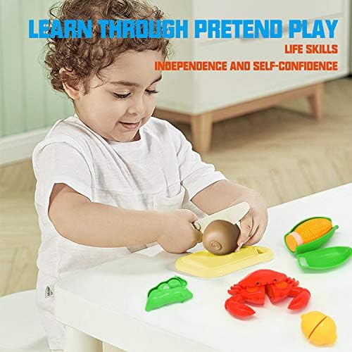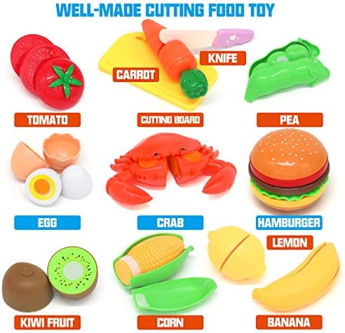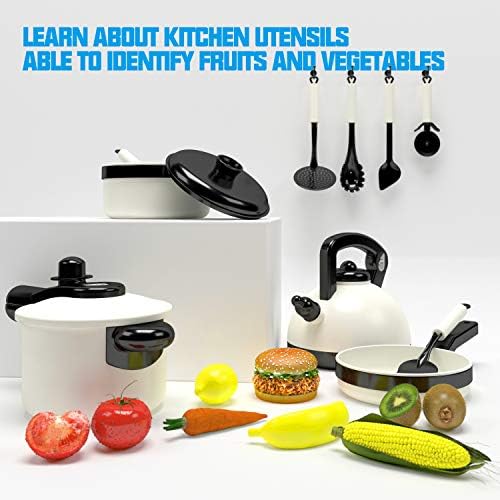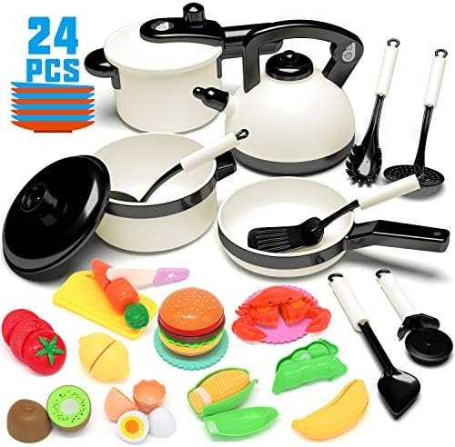 WORTH THE MONEY: 24PCS included. The pretend play set includes pots, pans, cutting play food, and other cooking accessories.