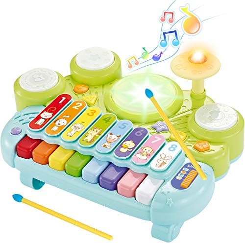 [Safe Material and Design]This 3 in 1 musical toy includes three instruments: Piano Keyboard, Beat Drum Set, and Electronic Xylophone. The musical keyboard drum set is made of eco-friendly ABS plastic material that is BPA-free and Lead-free. The Round-Edging Design ensures that babies and toddlers will not be harmed by hard edges. Batteries are in a compartment with a screw closing to keep out of reach of children.