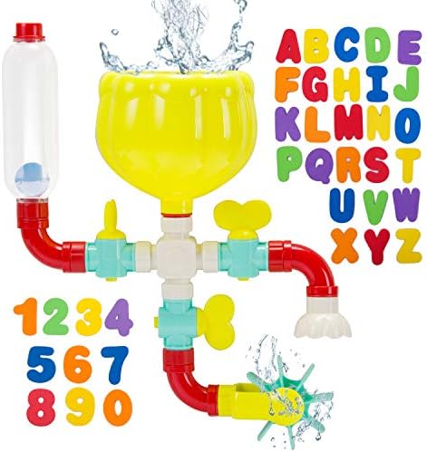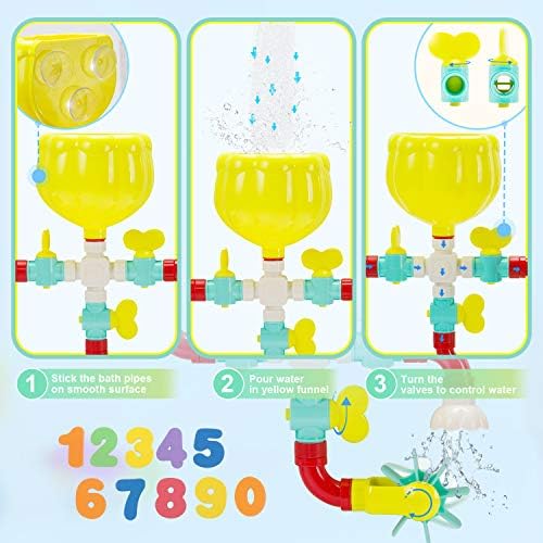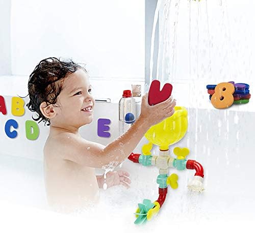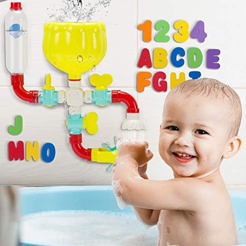 EXTRA VALUE MOLD FREE BATH TOYS SET – FOAM LETTERS NUMBERS and WATERFALL BATH PIPES