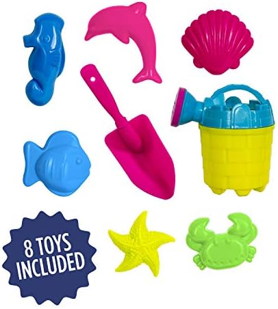 EIGHT PLASTIC TOYS INCLUDED: Watering can, Shovel, and Six Sand Molds; Toddlers of all ages can play all afternoon.
