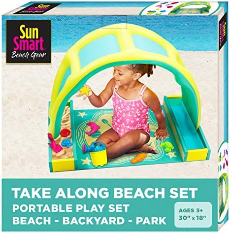 Toys for Toddlers: SunSmart Kiddie Activity Play Set, Beach Sand Toy Playset with Eight (8) Toys, Pop-Up Tent for Toddlers, Take-Along Beach Sand Play Kit with Canopy
