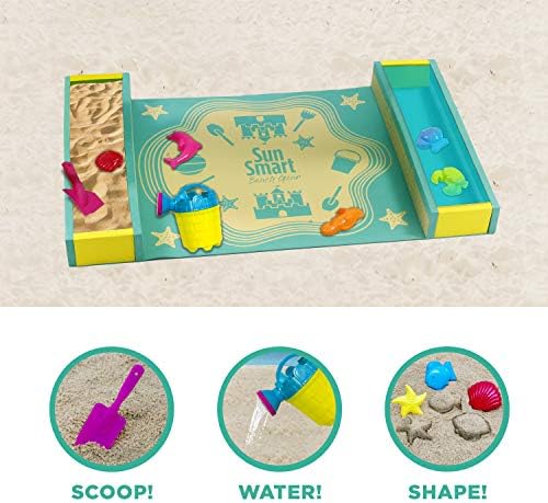 INDOOR AND OUTDOOR USE: Multiple Fun-Time Uses –Center Mat with two side boxes opens up flat; Fill side boxes with sand, water and fun toys.