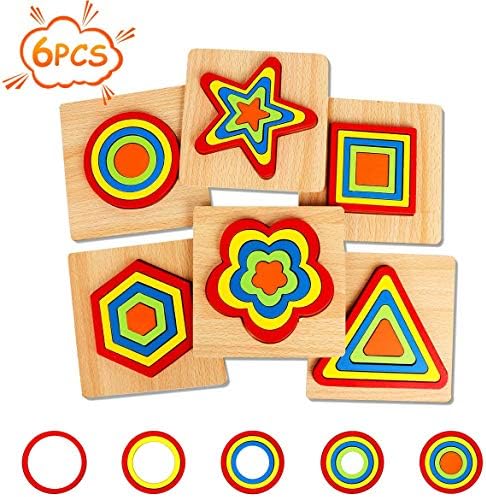✿ Toddler Puzzles:The wooden toys include flower, square, circle, triangle, star and hexagon puzzles, each shape blocks coming with a board, 6 puzzle boards in total. Great for kids to identify different shapes.