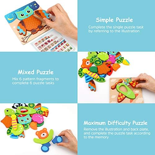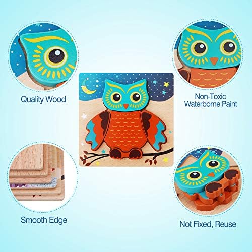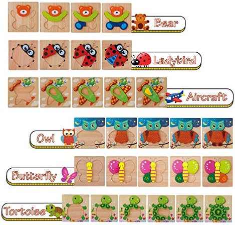 【Toddler Puzzles Toys and Illustrations Show】: Lovely butterflies, owls, tortoises, baby bears, ladybugs, and airplane puzzles help your boys and girls focus on creativity and solve problems. It greatly promotes children’s hand-eye coordination and attention development.We have attached illustrations to show that children can learn and play better.