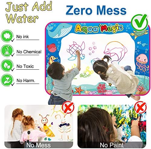 ❤️ SAFE & MESS FREE — No paint, Non-toxic, Non-polluting, no mess with water proof backing. The water drawing mat is made of soft polyester material, Eco-friendly and healthy for toddlers. Best Gifts for 3 4 5 6 year old girls boys.