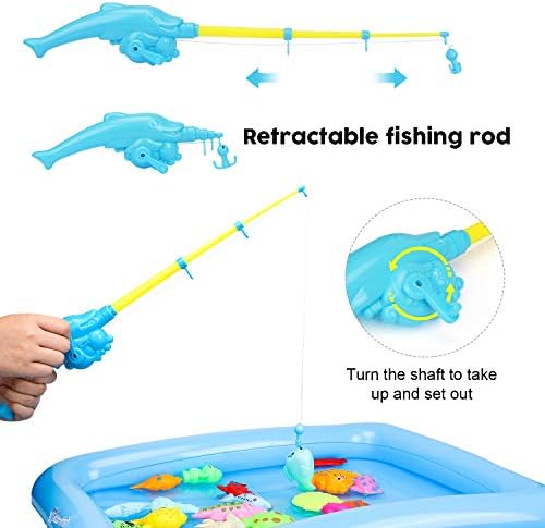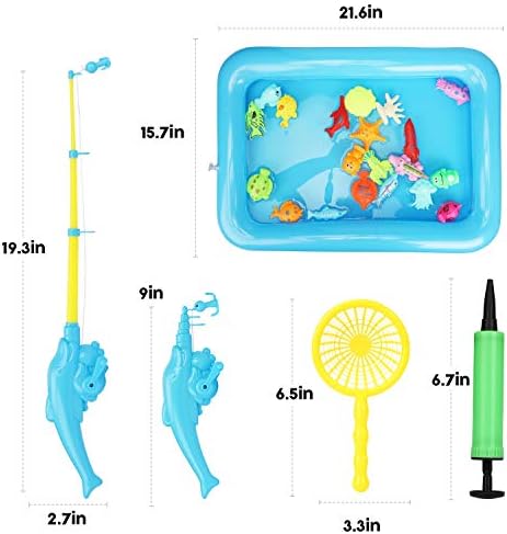 This magnetic fishing toy is super convenient inflatable pool which allows you to set this magnetic toy up at a park, as a beach toy, as a toddler pool toy, an outdoor yard toy, or even in your home. When you aren’t using it, you can fold up the kiddy pool and easily store the entire set in the included waterproof bag. .