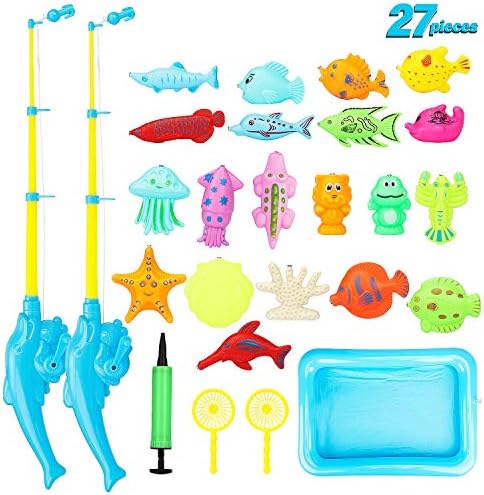 🐟 DURABLE POLES AND HIGH QUALITY PIECES – We noticed our competitors have trouble with broken fishing poles. That’s not something you will have to worry about with your Toy Life magnetic fish game. This set comes with 2 poles, 23 magnetic animal toys inchuding fish, starfish, octopus, jellyfish, and so on. The magnetic fishing poles are also very flexible and can stretch freely without risk of breaking.
