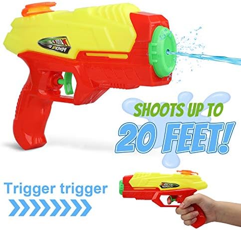 GREAT RANGE – SHOOTS FAR -Shooting range up to 20 feet! Longer shooting range and much more fun than similarly priced and similarly sized water guns! Much easier to soak your target during outdoor water games!