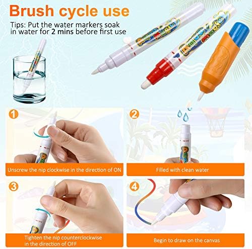 HOW TO CREATE PICTURES —- 1.Open the pen cap 2.fill in water 3.close the cap 4.Start doodle. For easy to get a drawing, children can refer to the pattern of the manual for painting or use a template to paint.