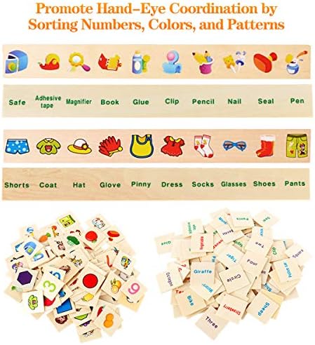 【Recommended Age】Suitable Montessori Toys for Toddlers aged 2-5. It’s perfect early learning resources for 2-year-old babies by recognizing patterns and colors. For 3 and up toddlers, parents can ask the children to match the English words with the correct objects and naming them.