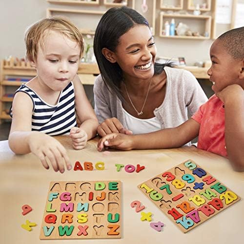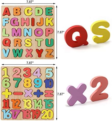 2 PACK WOODEN PUZZLES SET: The Wooden Alphabet Puzzle is a fun classic toy to get your children engaged in learning! The Puzzles include 20-piece numbers and 26-piece ABC alphabet. Learning the alphabet and numbers are the first things toddlers learn. The puzzle is not only a fun activity for your little one, but is a great toy for learning the alphabet, color recognition, and the basics of reading and spelling!